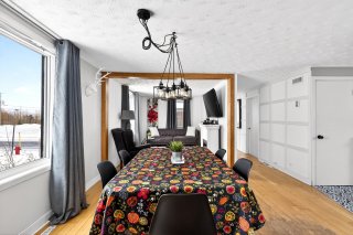 Dès l'entrée, on découvre un rez-de-chaussée baigné de lumière naturelle, où les grandes fenêtres laissent entrer le soleil à toute heure de la journée . L'aire ouverte regroupant le salon, la salle à manger et la cuisine crée un espace accueillant, idéal pour recevoir ou simplement profiter du quotidien en toute simplicité.